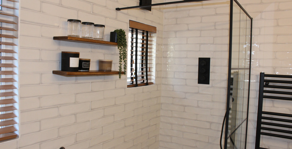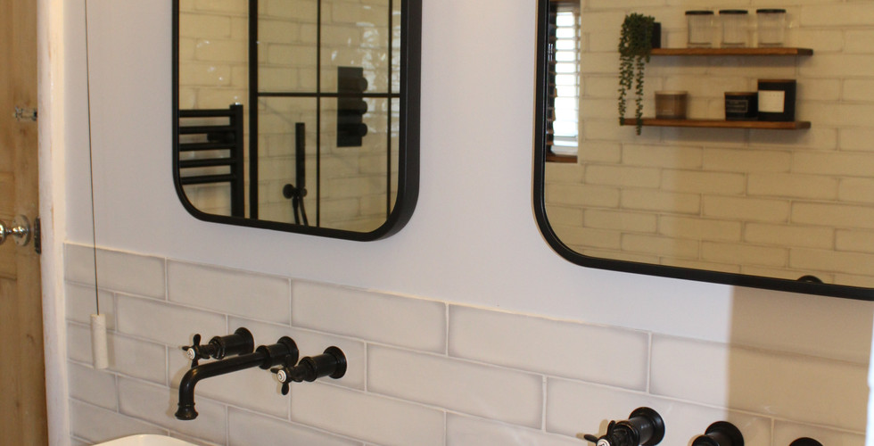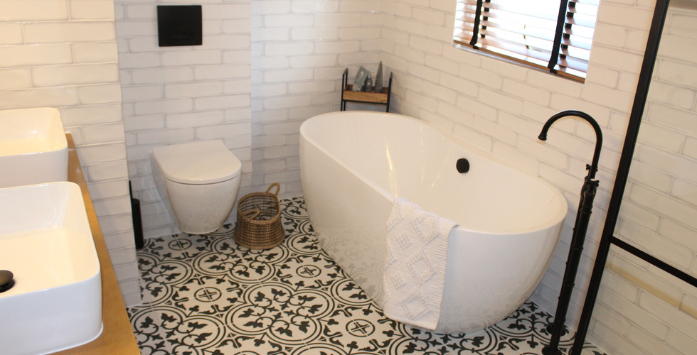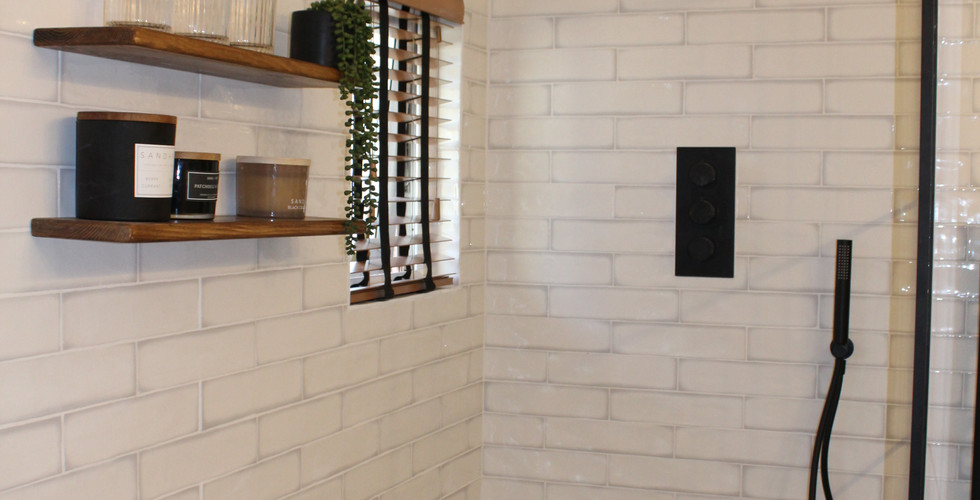 So now we began to move from design to project management, overseeing the building work in the bathroom, including the removal of the interior wall, closing up one of the doors, the electric fixing, plumbing work, tiling, painting and installation of all of the KOZY picked items. Here's some shots of the project in progress:
